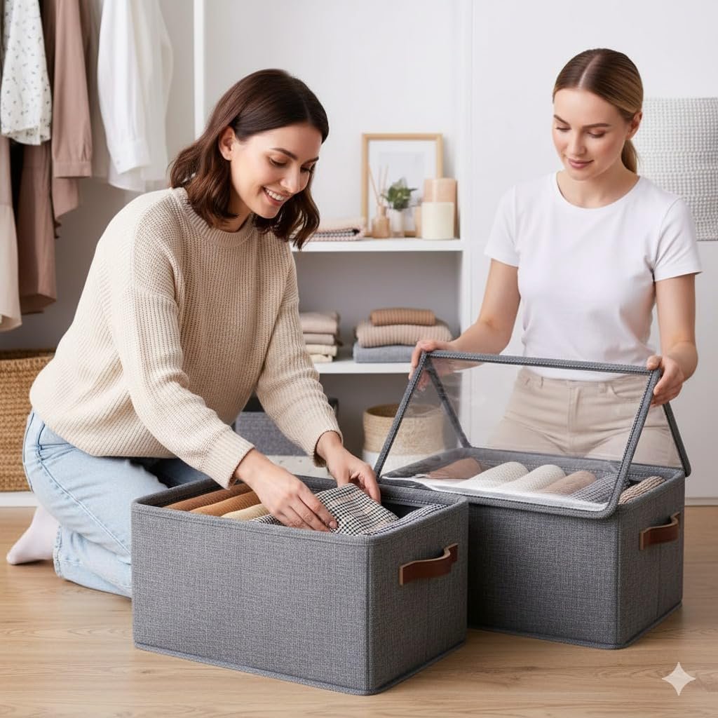 Collapsible Fabric Storage Cubes Organizer with Handles Foldable Storage Baskets for Organizing Toys, Books, Shelves, Closet, Large Storage Box with Handles
