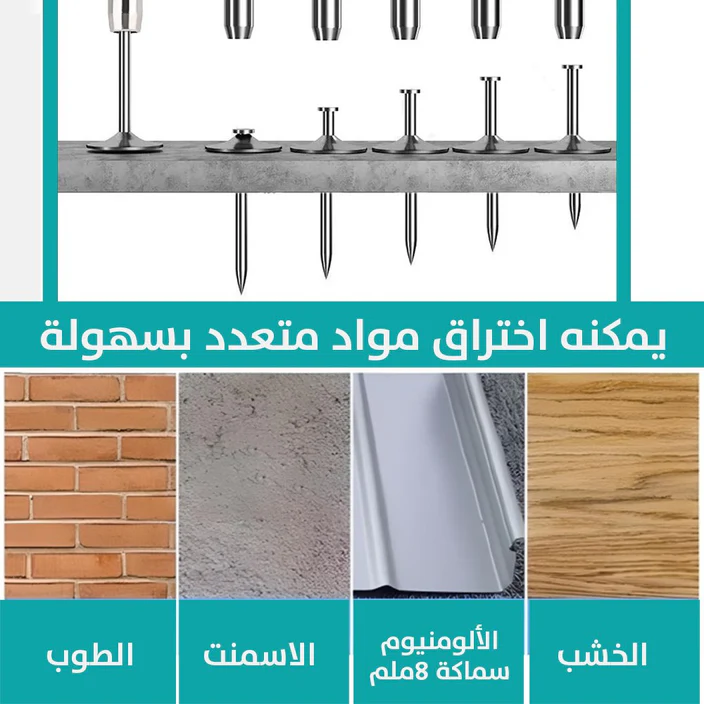 Nail gun for concrete: The reinforced and thickened steel alloy impact pin is crafted from high-quality military-grade materials, offering exceptional stability and a lifespan exceeding 100,000 uses. It features a double silencer design for noise reduction, ensuring a safer and more comfortable working environment.