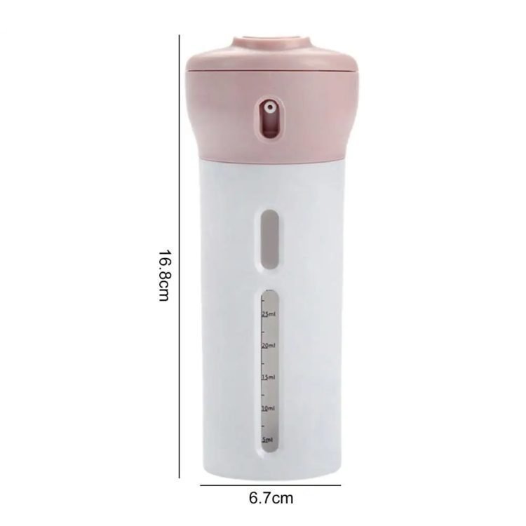 There are clear measurement windows on the outer bottle of this dispenser bottle to see the remaining liquid volume and small label windows to help you identify the four liquids inside without removing the casing.