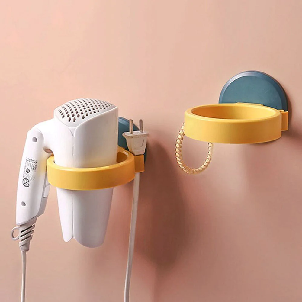 1pc Hair Dryer Stand Holder Blower Organizer Wall-mounted Bathroom Shelf Storage Hairdryer Rack Self-adhesive Hook No Drilling