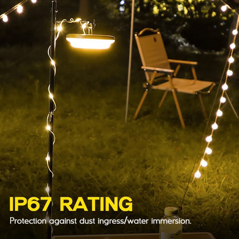 2-in-1 Camping and Ambient Light – your perfect outdoor companion! Designed for tents and canopies, it offers a 33ft high-strength light strip, quickly rolled up by hand for easy storage. Enjoy up to 240 hours of battery life with USB-C charging on a single charge. IP67 is waterproof and dustproof, it ensures a delightful camping experience regardless of the weather. Soft, eye-friendly lighting is perfect for tent decoration, campsite lighting, home ambience, car trunk decoration, festivals, and more.