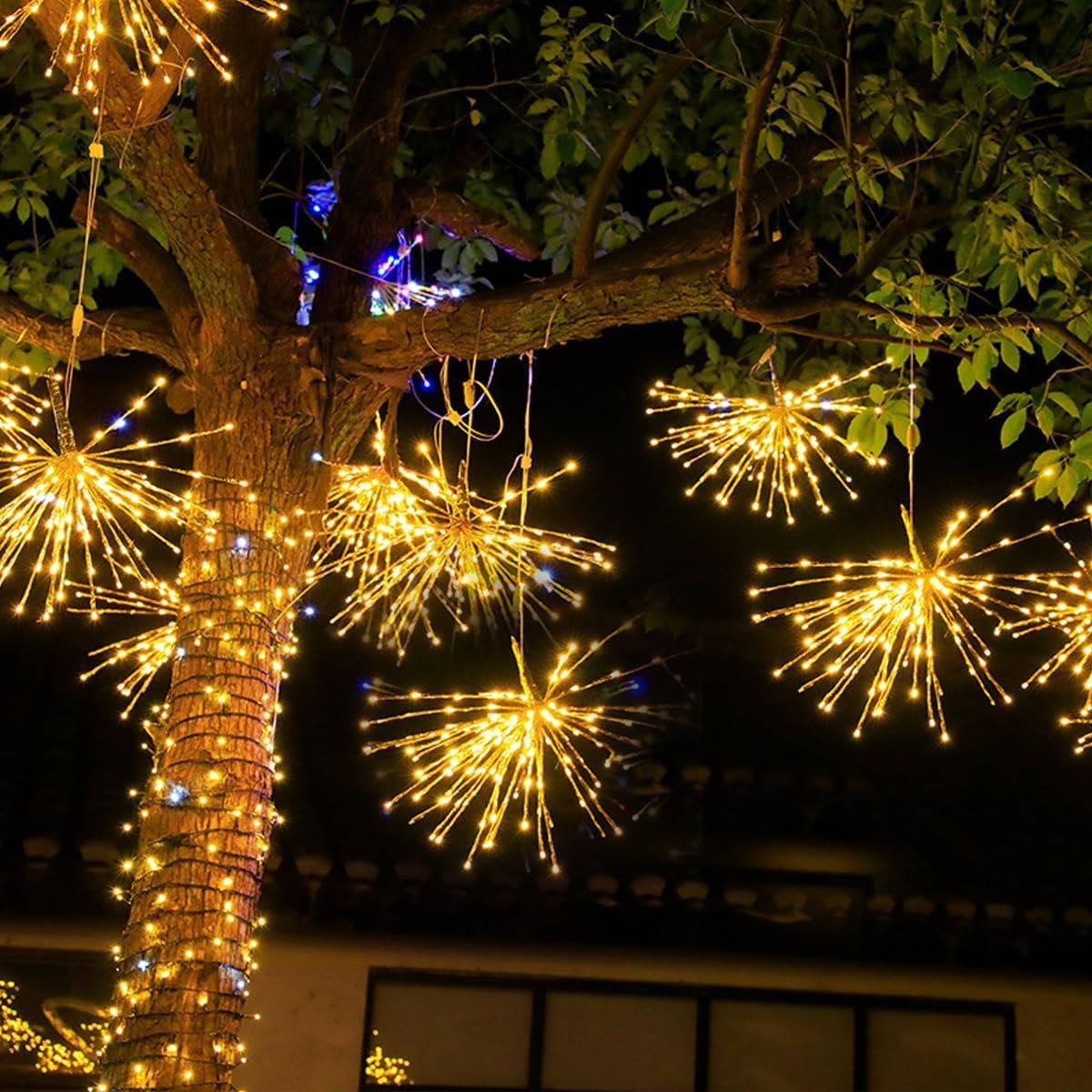 - 【Unique Starburst Firework Design】30 cm white warm starburst with 120 LED lights.