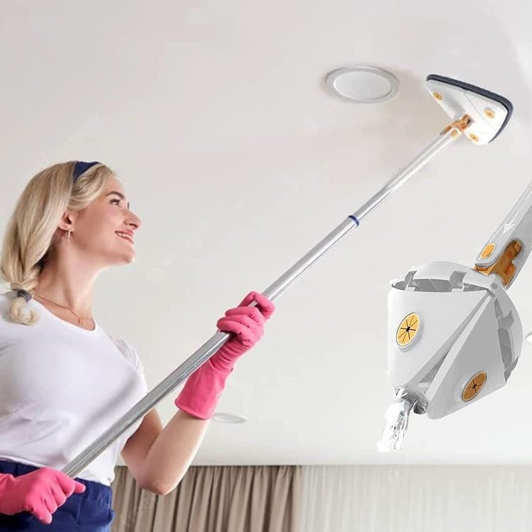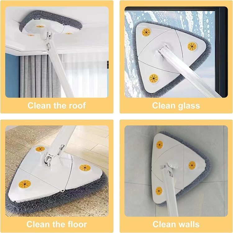 - Our wall cleaning mop is designed in triangle shape and the dust mop head can rotate 360?, so it is very easy to clean hard to reach places without leaving dead corners, especially useful for dust under the table, sofa and bed, wall corners, ceiling corners and window corners.