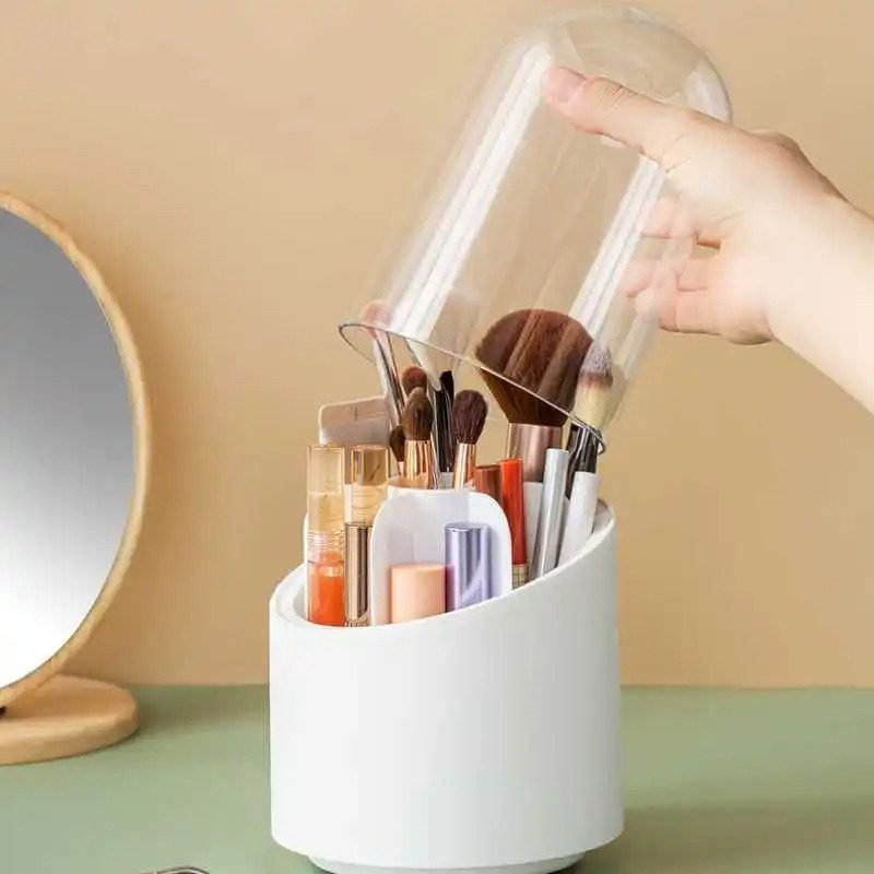 • Keep your brushes within reach and on display with our clear waterproof and dustproof cover. Perfectly store your makeup brushes on your desktop, bathroom mirror, or vanity, and use them just need to rotate whenever you need them.