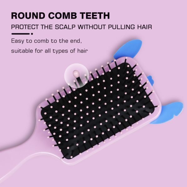 which features soft bristles that are gentle on hair, detangles hair, and has a comfortable, easy-to-grip handle.