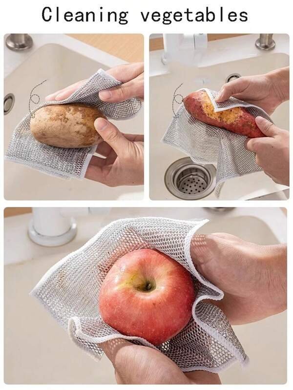 5/10/20pcs Non-Scratch Wire Dishcloth,Silver Wire Mesh Knit Cleaning Cloth For Wet And Dry,Reusable Dishwashing Rags,Kitchen Dish Towels,Washing For Dishes, Sinks, Counters, Stove Tops,Cleaning Tools.