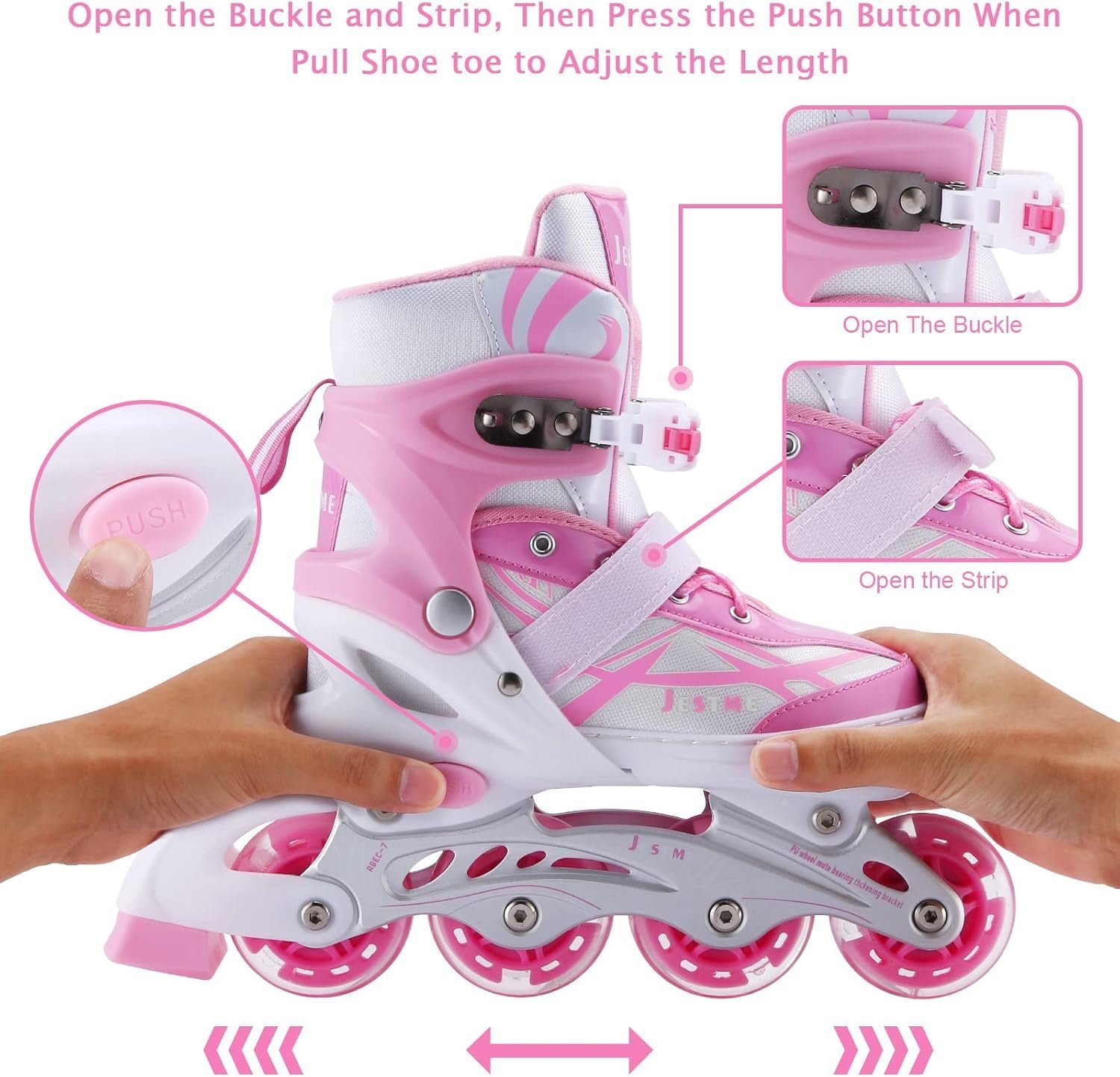 - Adjustable Inline Skates: Children Inline Skates with two Size: Small-Little Kids(11J-1US) and Medium-Big Kids(1-4 US). Each Size is Adjustable.