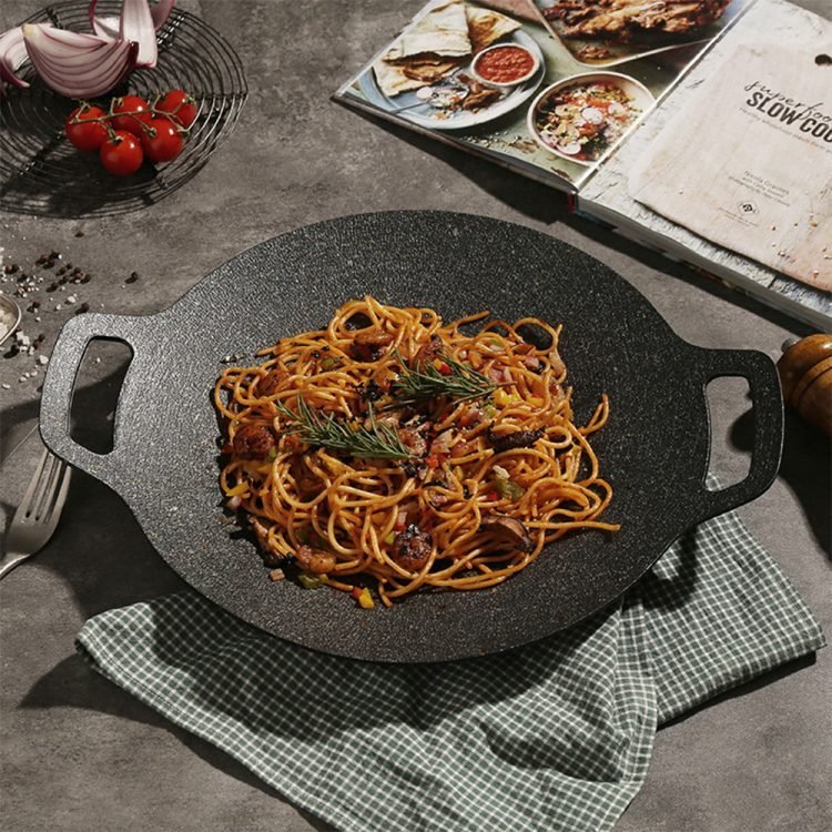 • FOR CAMPING AND OUTDOORS: This is a round teppanyaki frying pan that ranges from grilling to stirring at campsites and outdoor BBQ parties