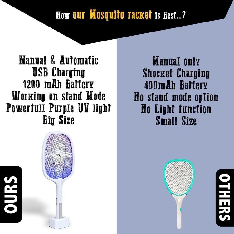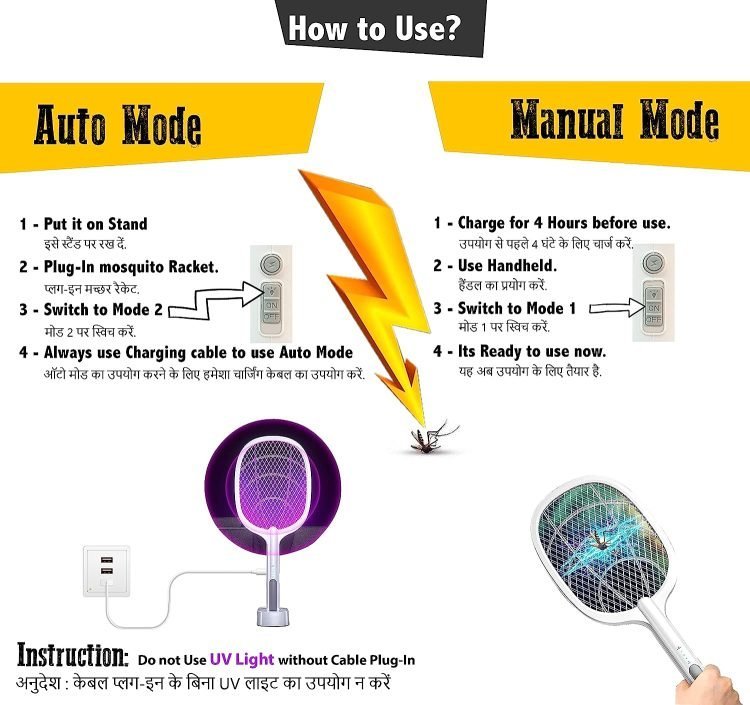 - ? Manual Mode ? First Recharge Racket Before 4 hours of use. Switch to Manual mode and use it Handheld to kill Mosquito.