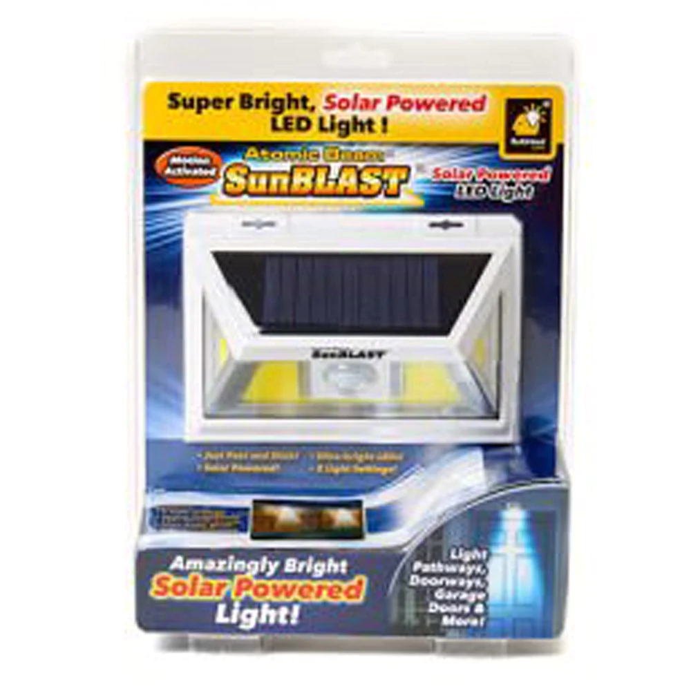 ? WIDE ANGLE BEAM: Other outdoor lights pinpoint light. Atomic Beam SunBlast has a wide-angle beam that lights up a larger area – perfect for doorways, paths, garages, and more.