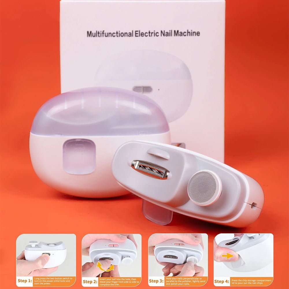 - Simply open the lid, touch the power switch, place the nail into the trimming opening and move the machine slightly from side to side to finish fingernail clippers, don’t stay in the same area for a long time to avoid over-trimming. Our electric nail clippers compared with traditional nail clippers, this electric nail clipper or nail trimmer makes nail trimming easy and neat.