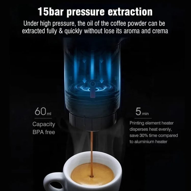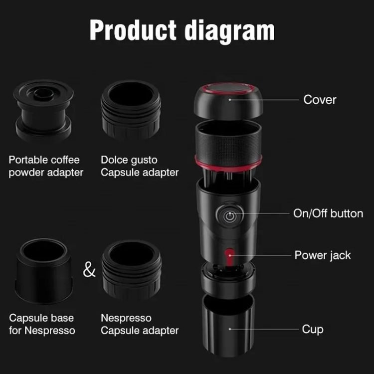 Clean surfaces, compact body, suitable for placing in the car, suitable for car, office, handheld, so you can drink aromatic coffee anytime, anywhere.