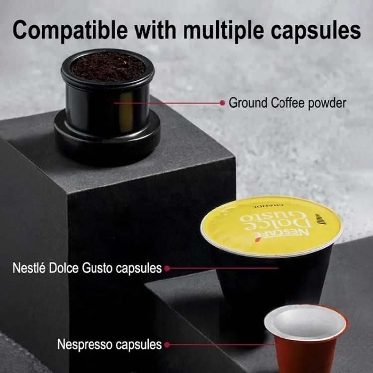 You can use (DOLCE GUSTO) (NESPRESSO) coffee capsule Volume 60ml of water. automatic closing