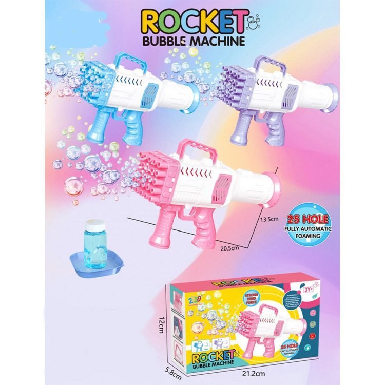 Bubble Machine with 25-Hole Rocket Launcher Bubble Machine Gift for Kids