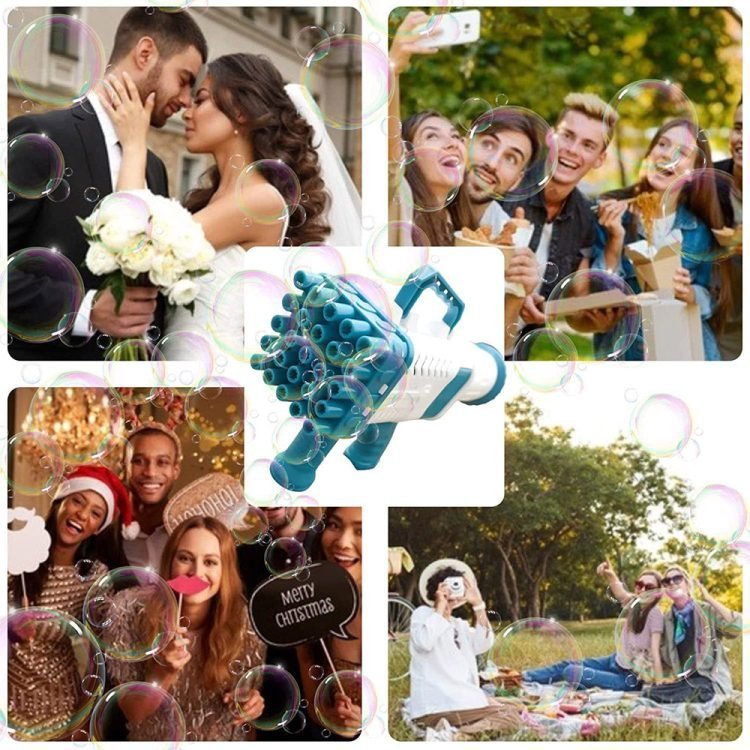 • The bubble machine gun has 25 bubble holes and can blow . When the bubbles are flying, the colorful bubbles can attract the attention of the kids, suitable for parties, weekend weddings, tap the bubble liquid and pull the trigger, and a large amount of bubbles will be ejected.