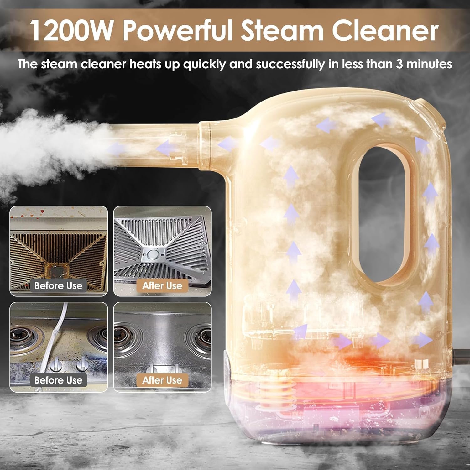 - 【Powerful High Temperature Steam Cleaning】Handheld Steam Cleaner releases 1200W high-pressure steam for powerful cleaning, easily removing even the most stubborn dirt and stains. The upgraded heating tube is resistant to high temperatures and oxidation, and has a longer service life.