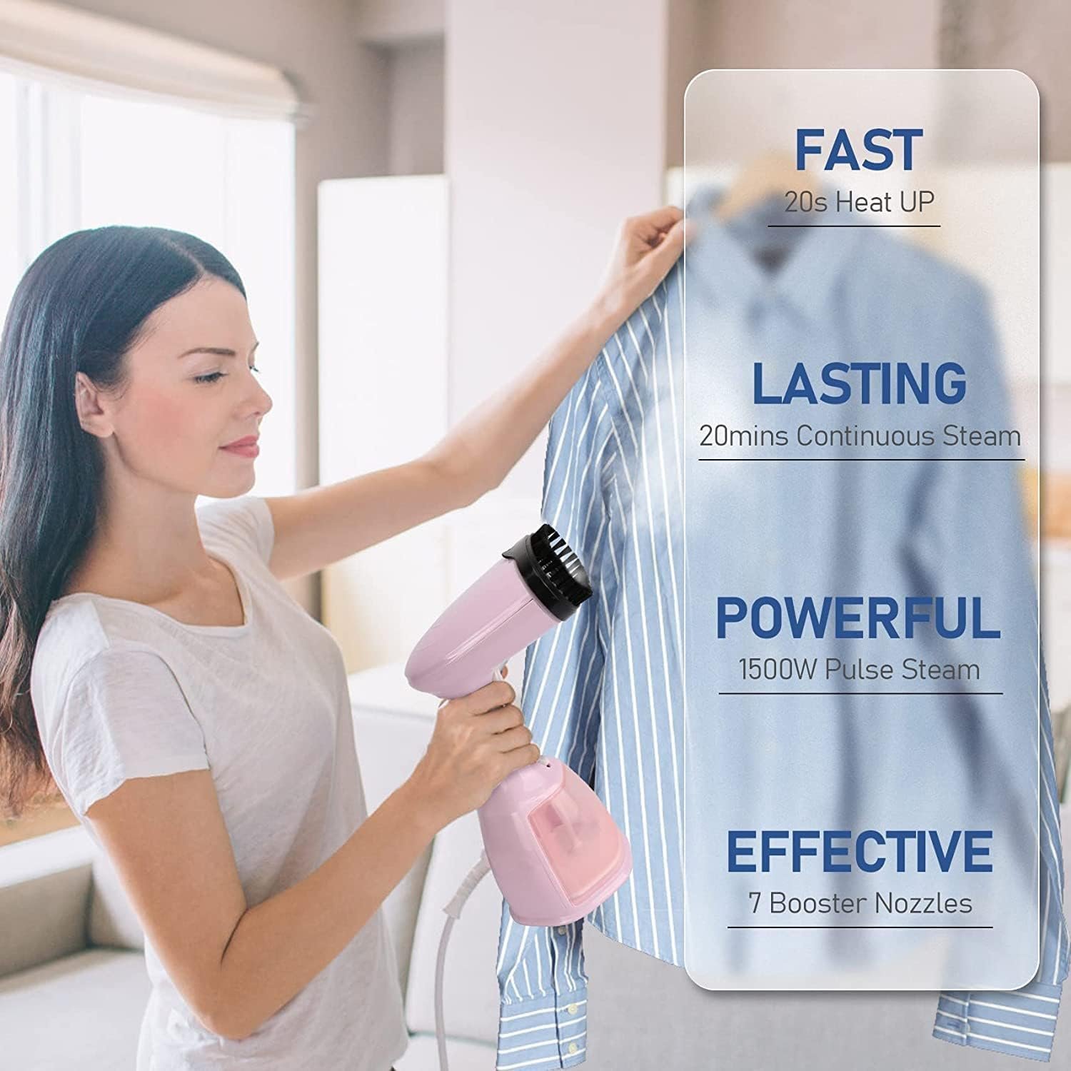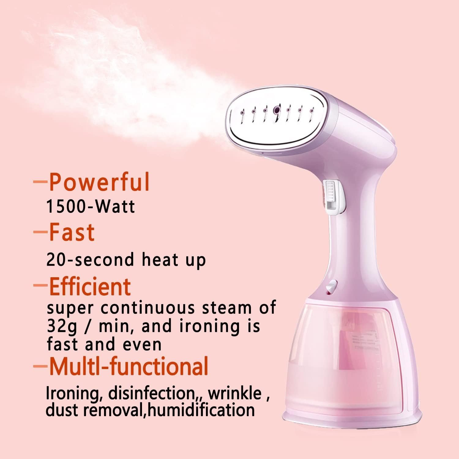 ? Efficient and Fast: This garment steamer heats up in just 20 seconds, allowing you to quickly prepare for outings. With a powerful 1500W output, it delivers a continuous steam flow of 32g/min, ensuring fast and consistent ironing.