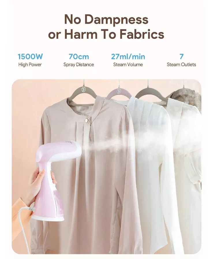 ? Super Wrinkle Remover: Unlike standard handheld steamers, this professional-grade unit features a powerful 1500W power supply. Enhanced with an upgraded nozzle, it allows over 80% of steam to penetrate difficult fabric areas, effectively removing odors. Its design also prevents water leakage for safe and reliable use, restoring your favorite garments with ease.