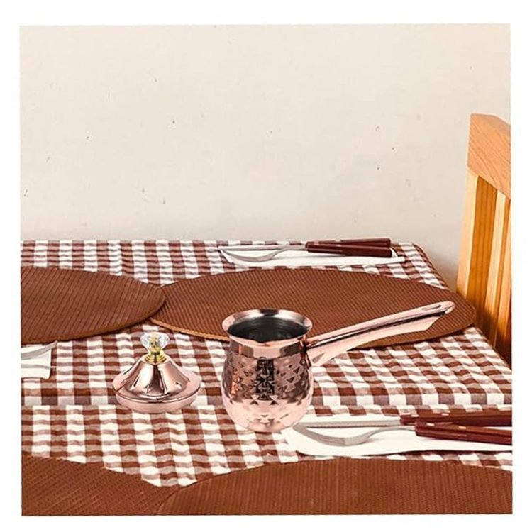 - Cezve coffee pot– specially designed for stovetop use (gas and electric); handle keeps hands safe.