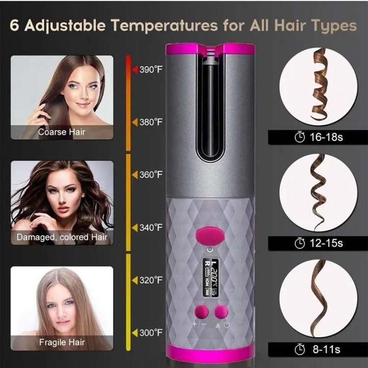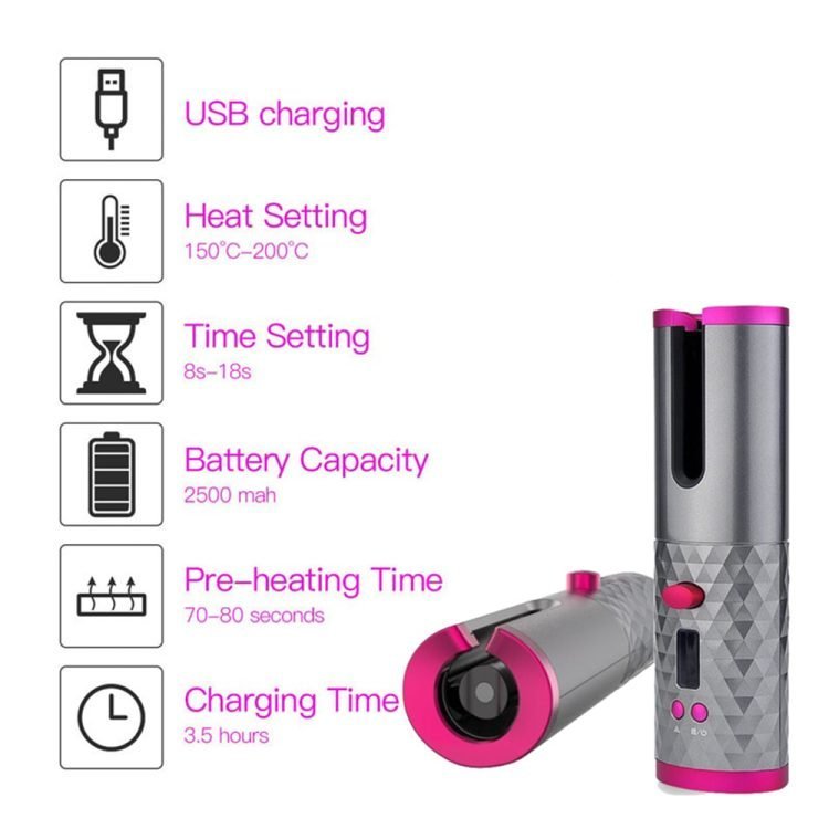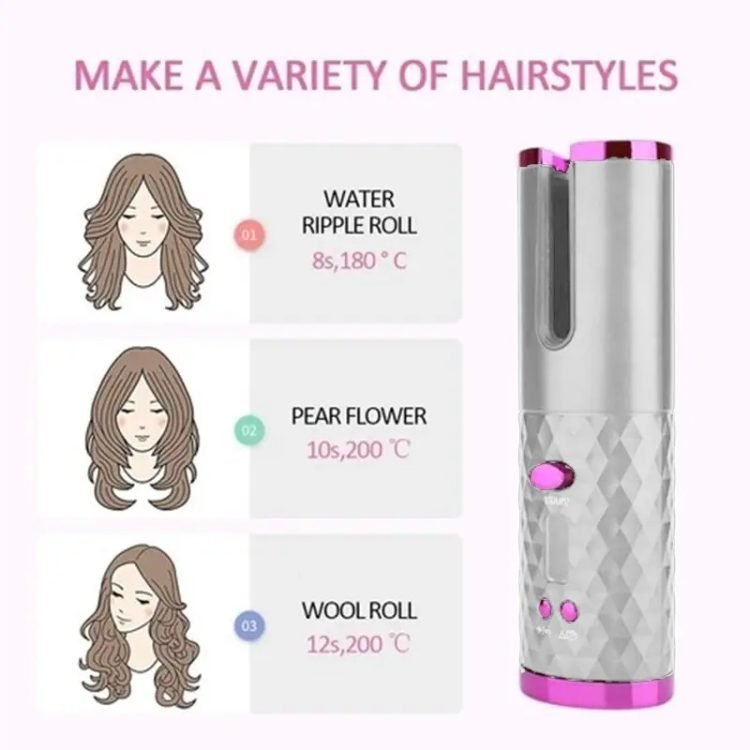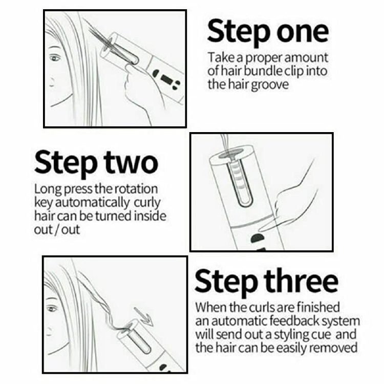 Package included: :1 * Automatic curling iron 1 * Charging Cable 1 * manual 1*Velvet travel bag