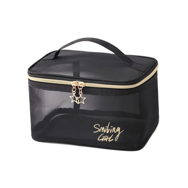 Cosmetic Bag Transparent Mesh Easy to Carry Zipper Black Convenient Storage Polyester Large Capacity Toiletry Bag for Travel