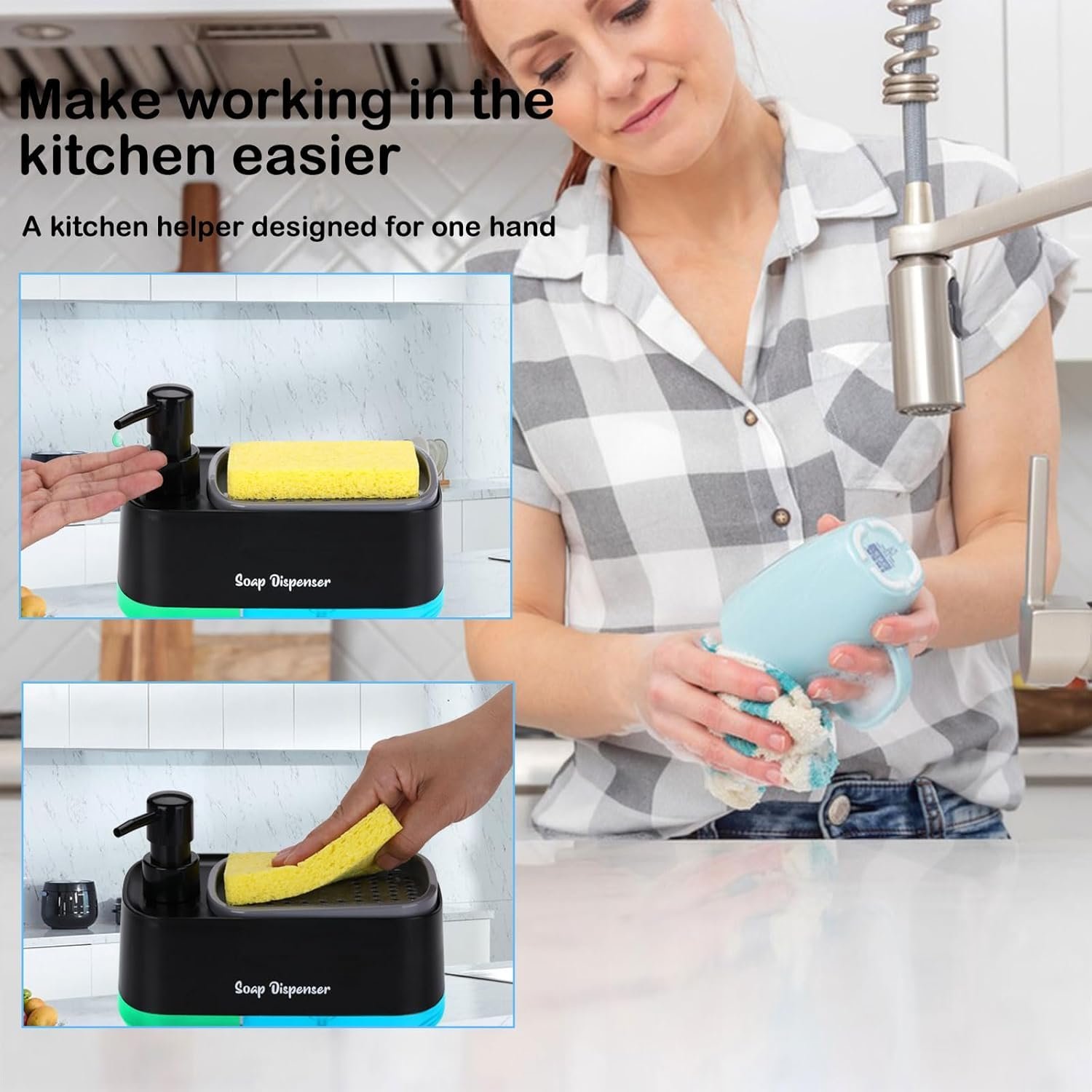 1. This soap dispenser with sponge holder offers a convenient solution for storing and dispensing your favorite dish soap while keeping your countertop neat and tidy.