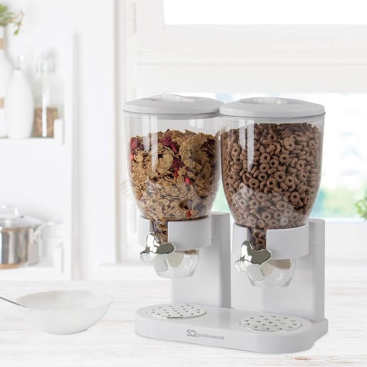 - Construction: the cereal dispenser was designed with 2 containers of 3.5 litres on a station, so you can put the cereal bowl on the station as you wish.