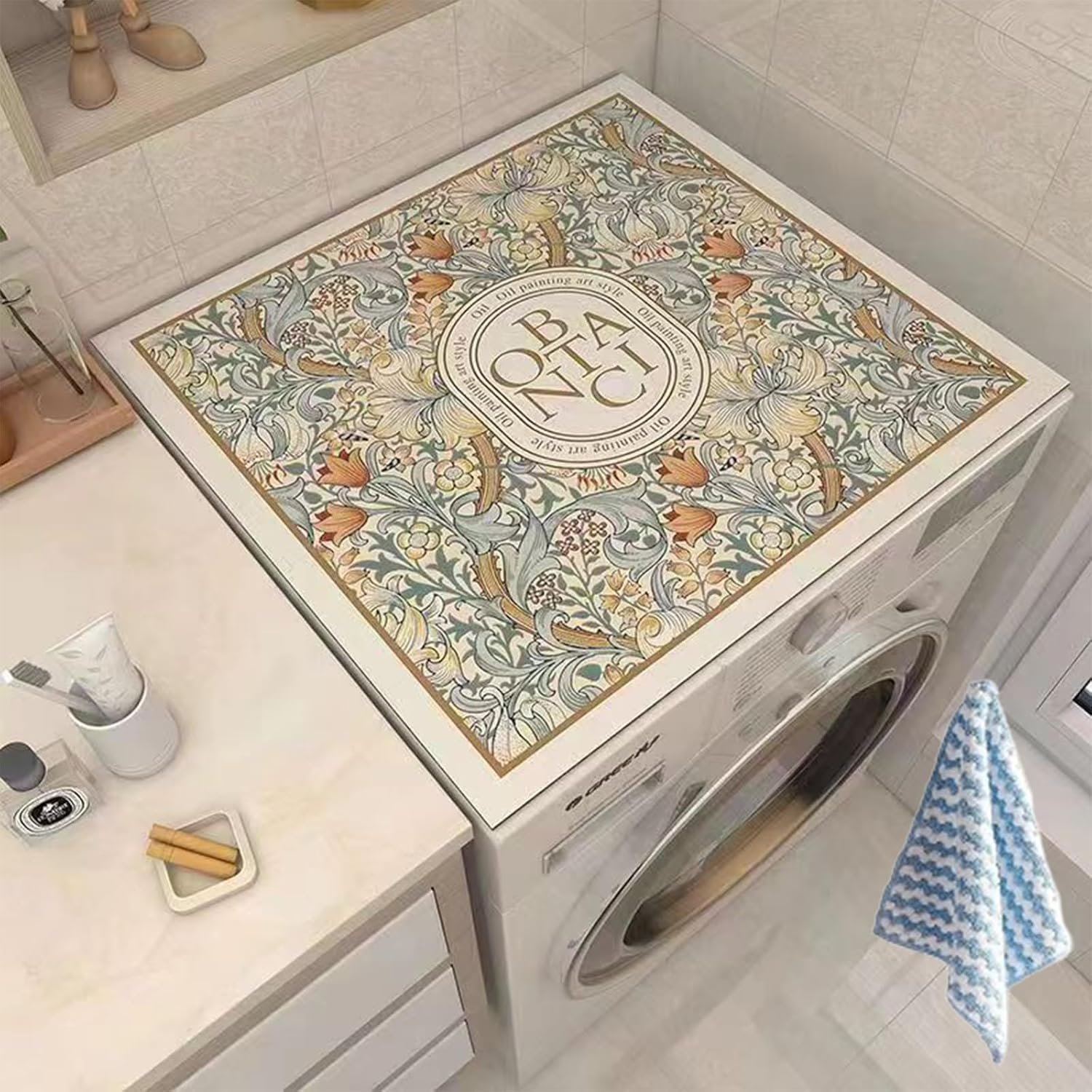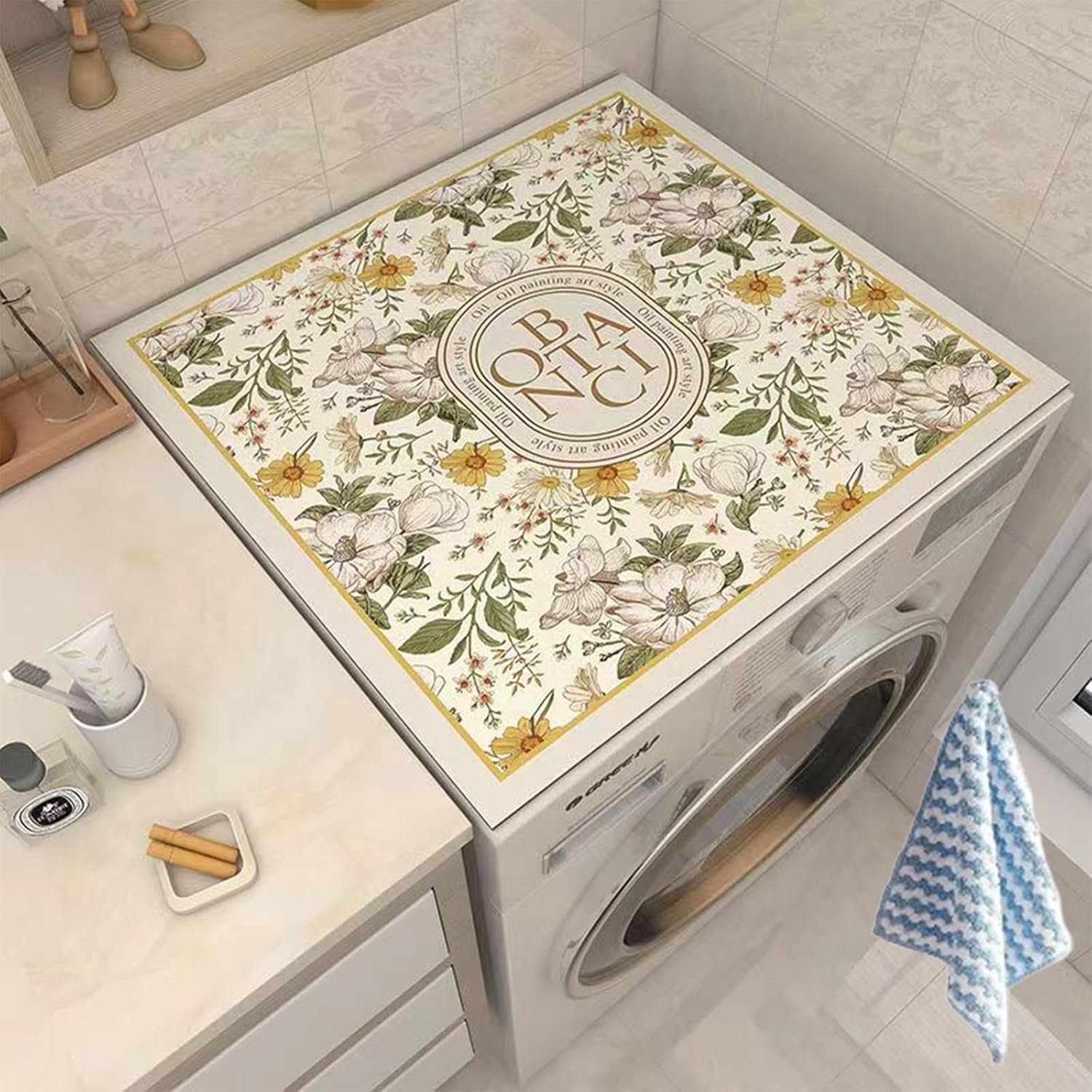 - Our Washing Machine Protective Mat safeguards the top of your washer and dryer from scratches, keeping your laundry room looking pristine. This Dust Cover Pad for Washer and Dryer is an essential accessory for every home.