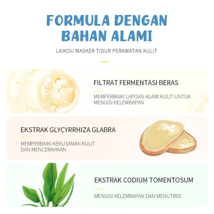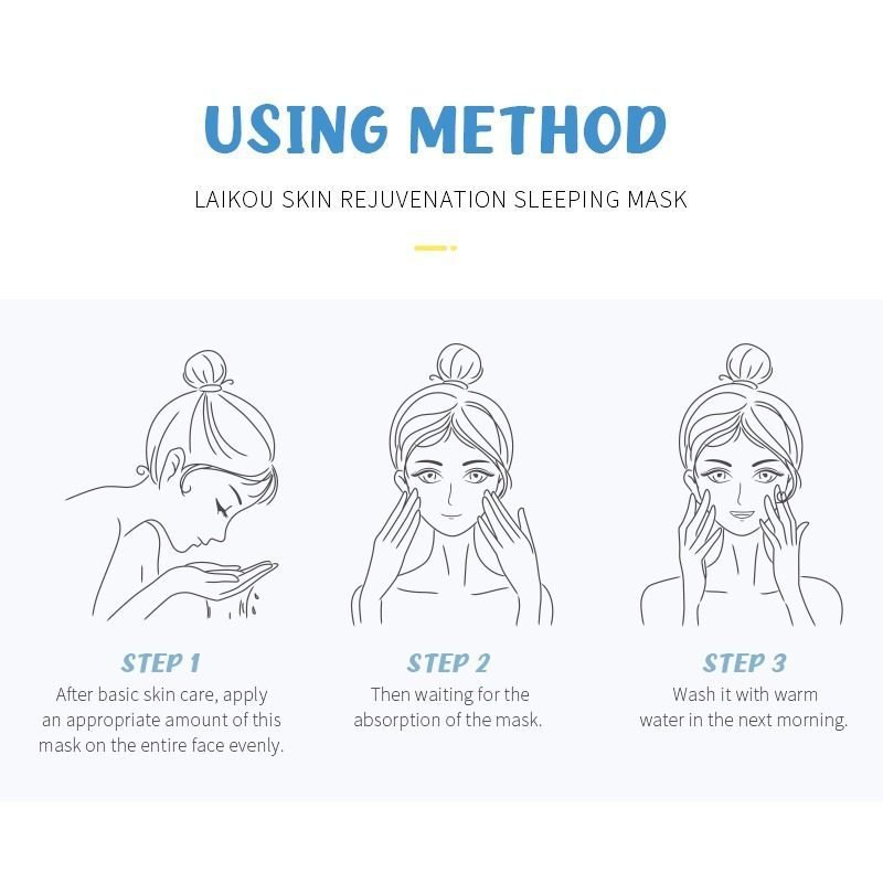 - The skin sleeping mask contains rice yeast filtrate and glycyrrhiza glabra extract, can improve the skin’s natural moisture barrier to replenish moisture, soothe skin and improve skin tone.