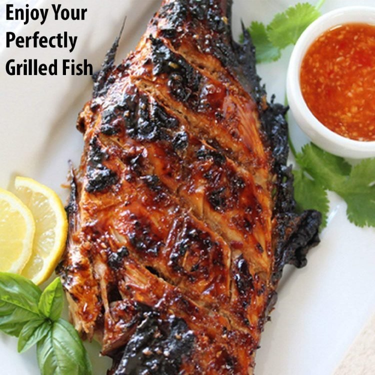 BBQ Charcoal Grill Accessories as Fish Grilling Basket with Locking Grill Handle for Outdoor / Indoor BBQ Set Tools for Grilling Any Fish Up