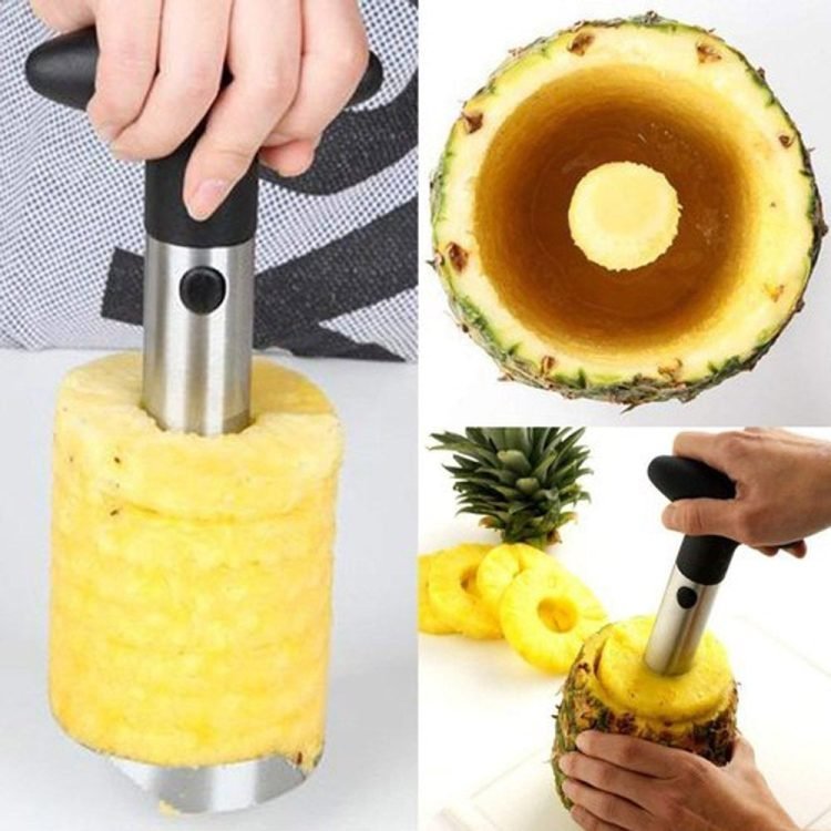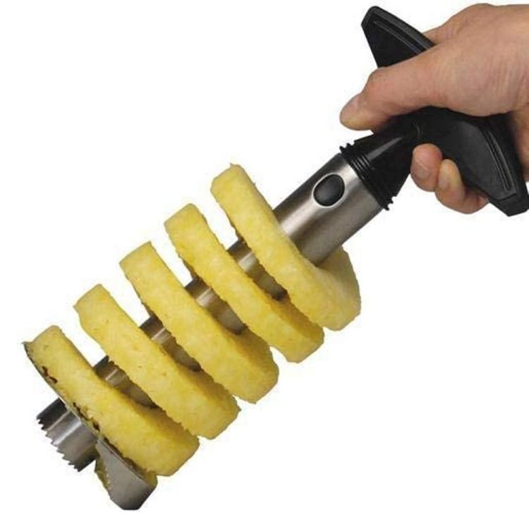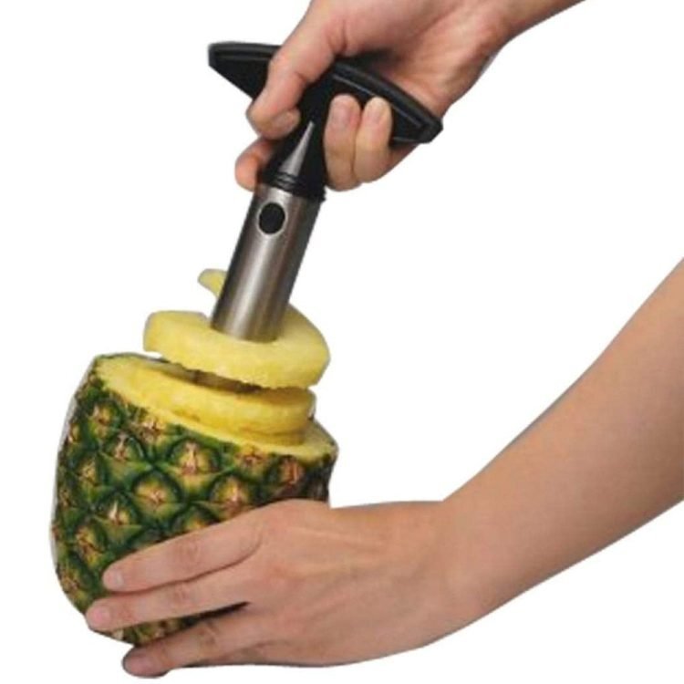 - Just cut off the top push in the cutter and twist,One turn, one slice, or the whole pineapple in one go