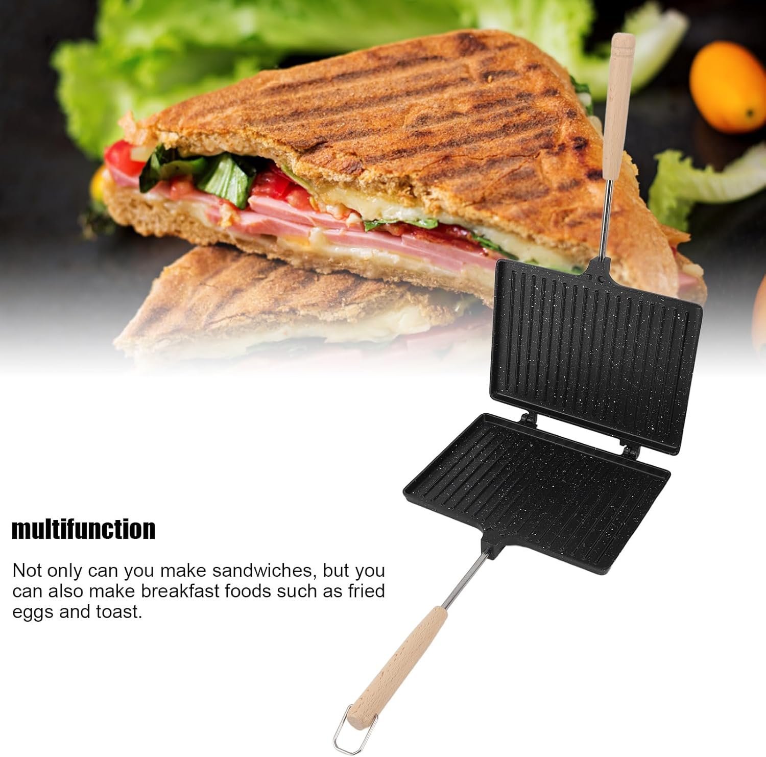 gernie Non Stick Sandwich Maker Grill, Aluminum Alloy Sandwich Toaster with Removable Wooden Handle, Double Sided Sandwich Hand Toaster for Breakfast Maker, Grilled Cheese