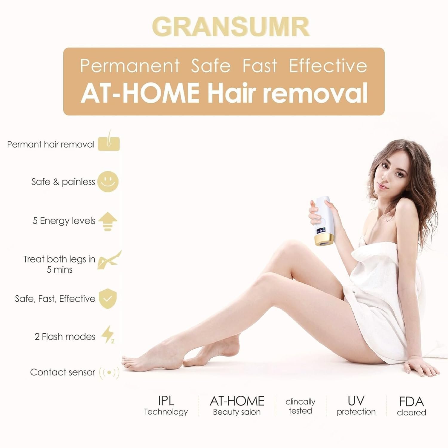- At Home Hair Removal:The Gransumr permanent hair removal soft and warm, and the skin only feels slightly warm. It is very gentle, especially suitable for first-time users. This makes hair removal completely painless. Compared with the cost of salon hair removal methods, permanent hair removal is safe, simple, gentle, and effective when used at home. You can get the same hair removal effect as a beauty salon.