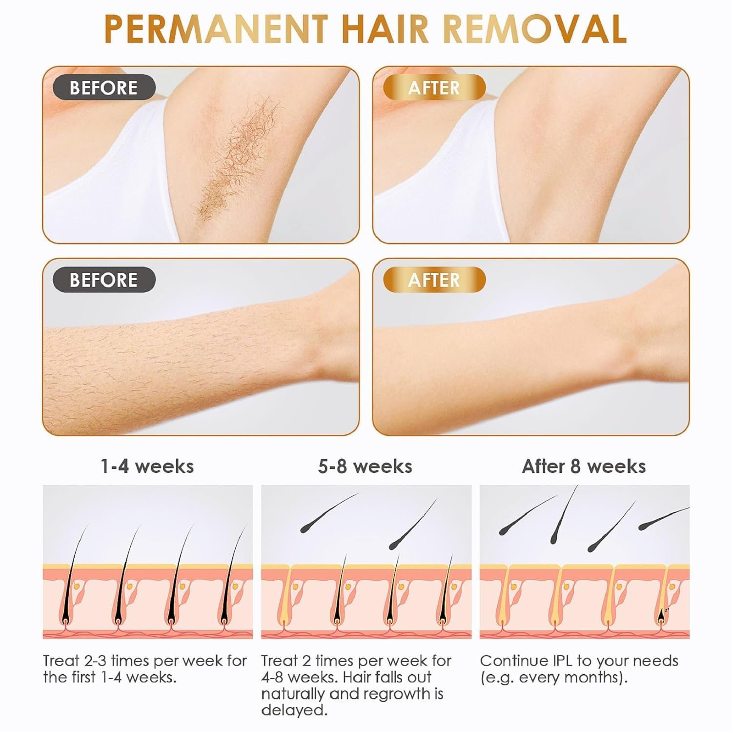 - Fast & Effective Hair Removal: According to test and studies, 75% of hair grows slowly and reduces after 4 weeks with the hair removal. The hair became thin after 6 weeks of using. With the touch of a button, to get a precise, effective and professional hair removal.
