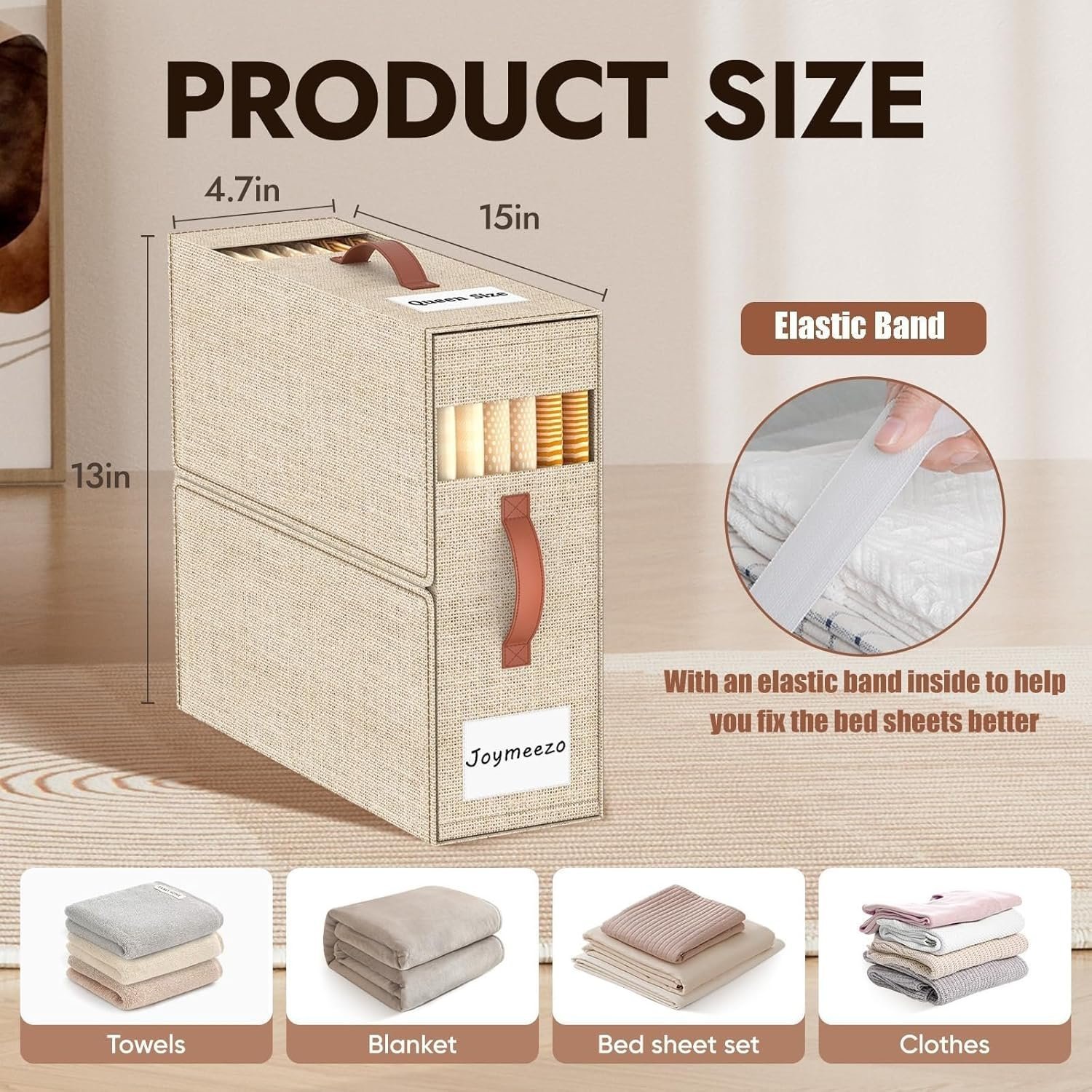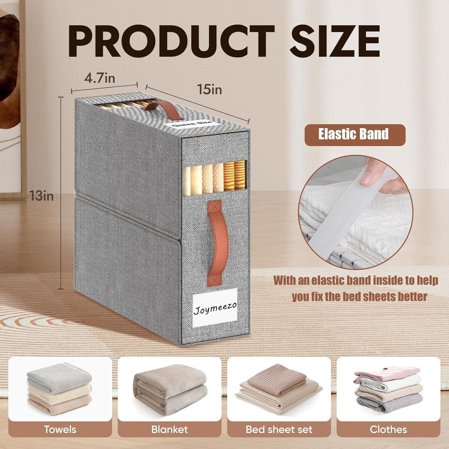 • ?ELASTIC BAND?The elastic storage band in the bed sheet organizer is specially designed to keep sets together with clean, space-saving storage.