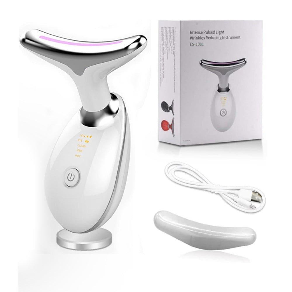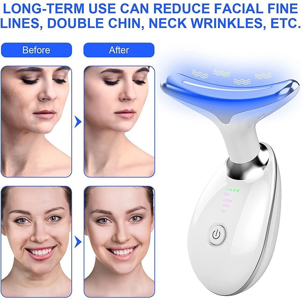 - This multi-functional facial neck massager can promote blood circulation and metabolism to clear meridians, help eliminate double chin, resist and slow down cell aging. Deeply clean the debris in the pores to achieve the effect of shrinking pores, reducing spots and acne, and resolving dull and dull skin.