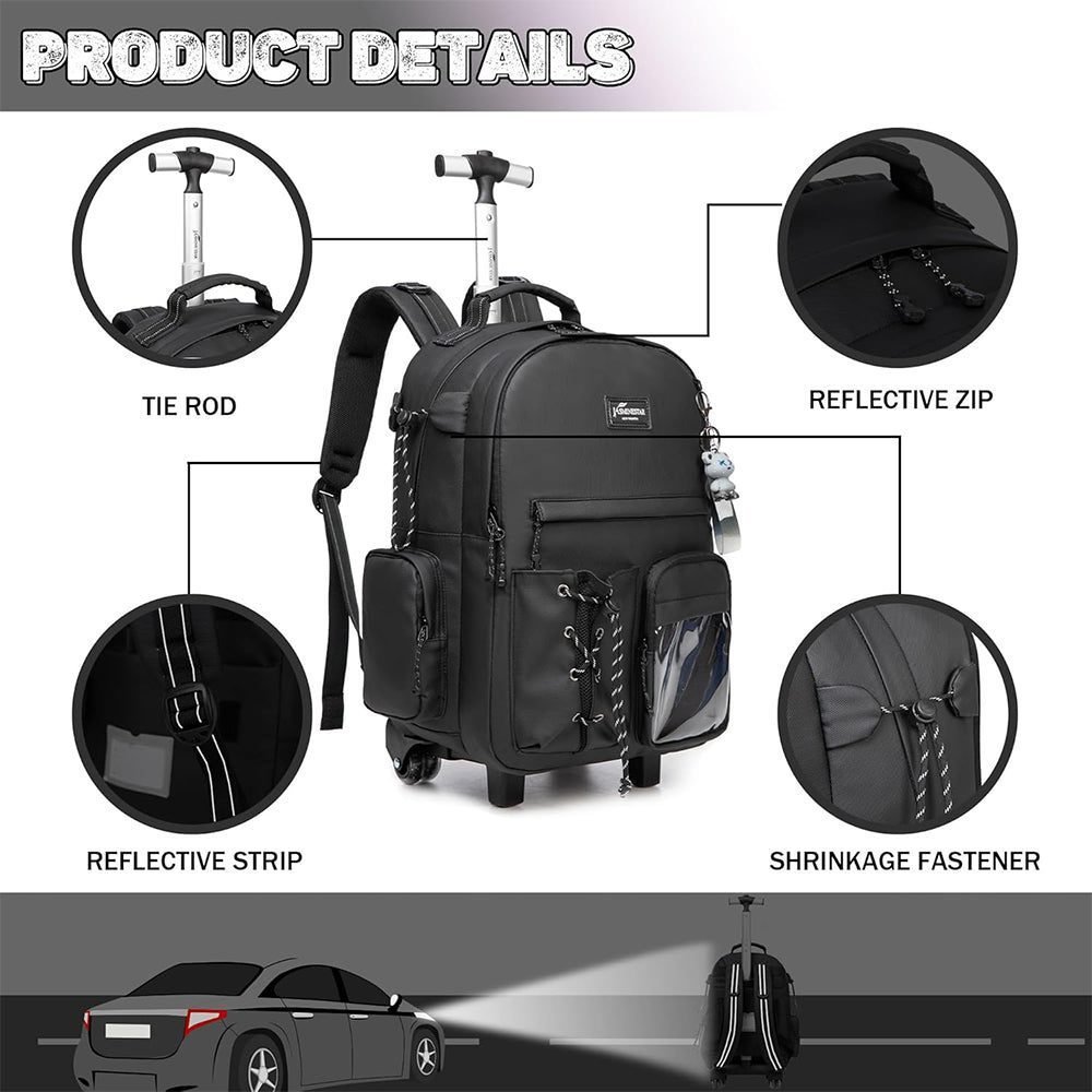 - Lightweight and durable rolling backpack, to reduce the pressure of the student’s back to school, it is a good choice for boys teenagers to school! It is made of good materials, great design and trendy cool colors; All zippers open and close smoothly, strong rolling back is great for teenagers with heavy books. Better quality.