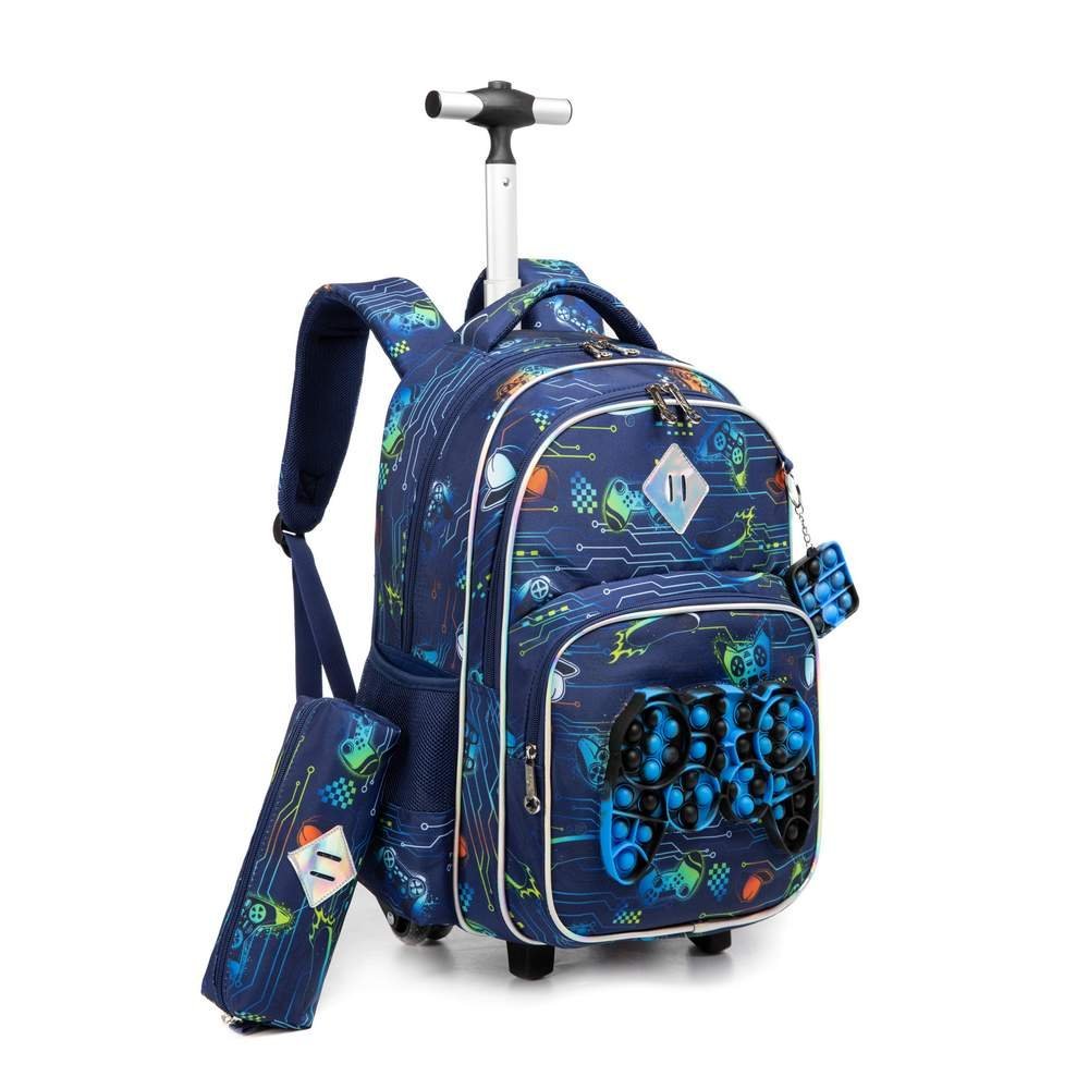 - The kids rolling suitcase including through one rolling backpack, one lunch bag, one pencil case.