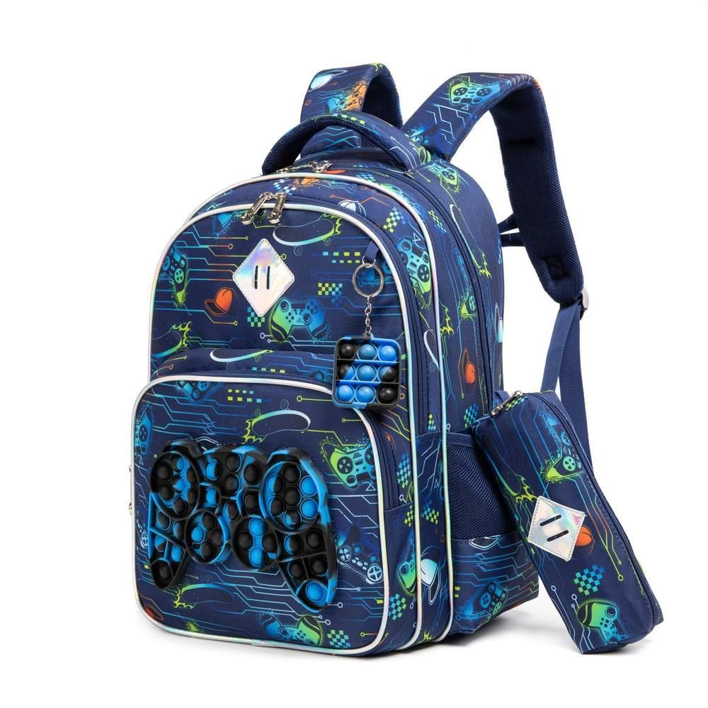 Backpack contains 1 large main compartment with double zipper with laptop pocket for binders; laptops; books; etc. 2 front pocket for notepads; glasses; etc., 2 side pockets for water bottles or folding umbrellas; [Boys Backpack Details
