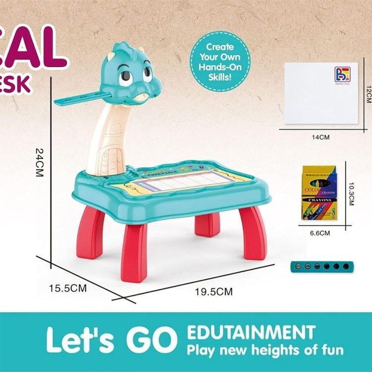 Unlock your child’s artistic potential and let their imagination soar with this LED projector drawing table. The dinosaur-themed sketches and interactive tracing experience make it a captivating and educational toy for budding young artists.