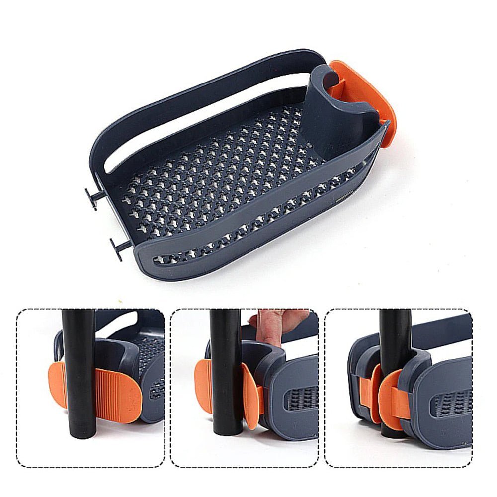 - The 2-in-1 sink sponge holder for household sinks makes efficient use of space. When in use, the shelf position can be adjusted as needed, which is very convenient and user-friendly. Clips onto the faucet for easy use without worrying about it falling off.