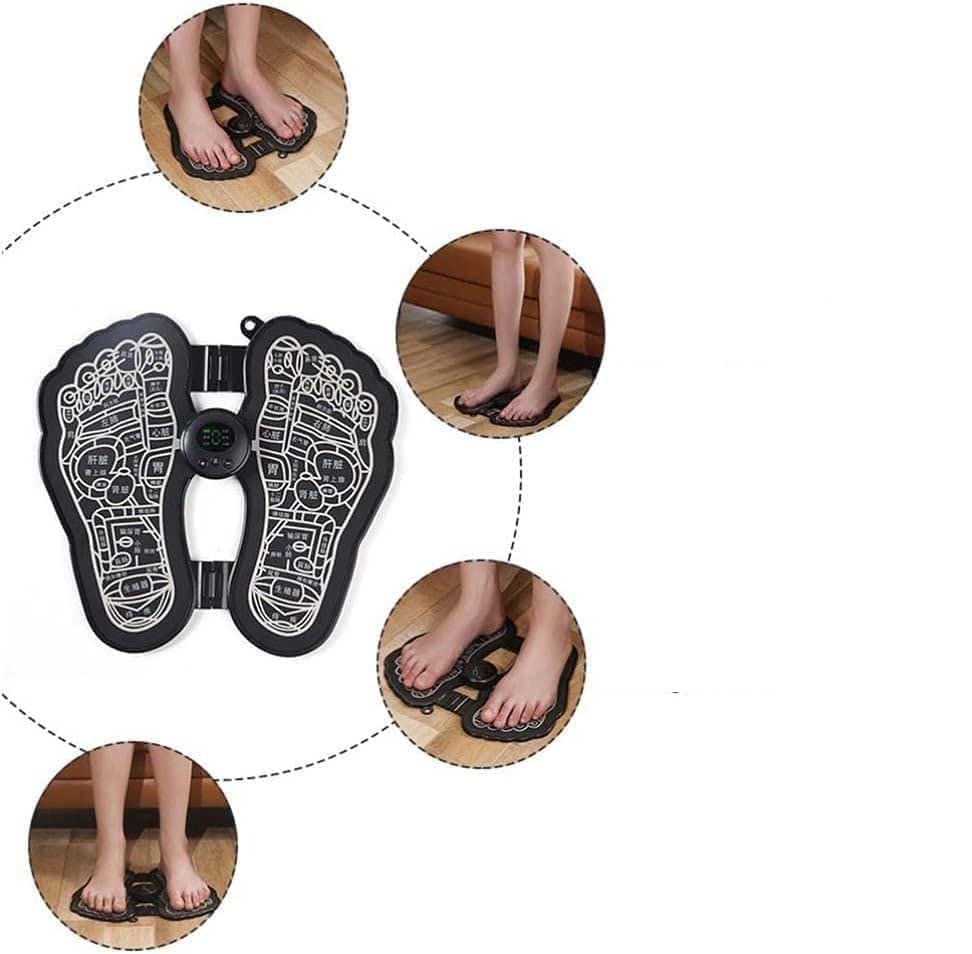 • BIOELECTRIC MASSAGER : This bioelectric foot massager sends signals through sort pulses directly to the leg muscles to relieve foot fatigue.