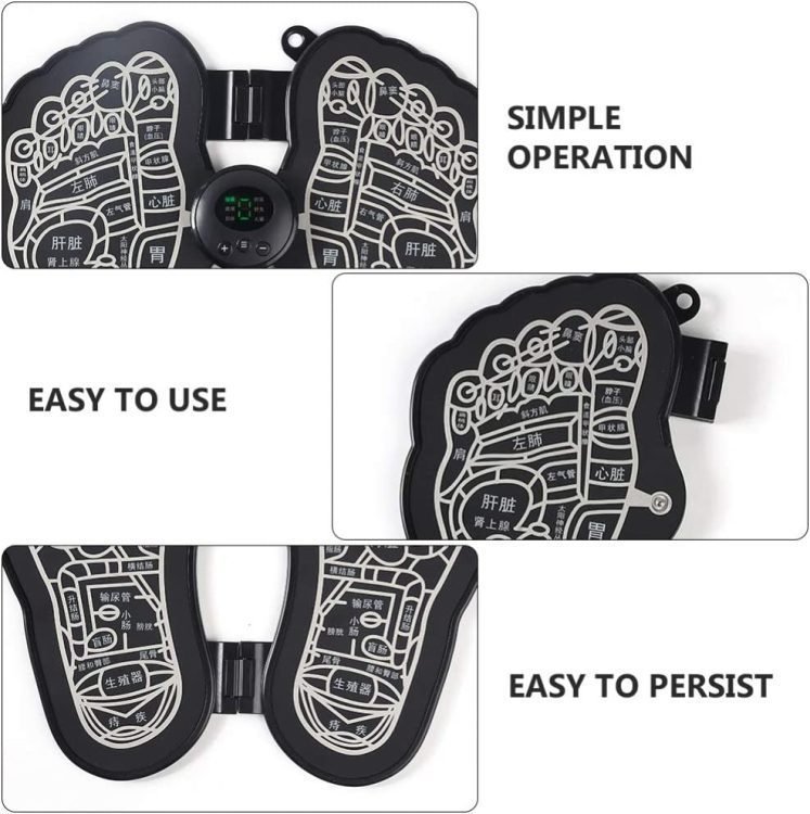 • EVERYWHERE, ANYWHERE : The foot massage pad is lightweight, foldable and rechargeable, making it easy to take anywhere.When you put your two feet on the mat, the weak current flows from the sole of the foot to the entire lower leg below the knee. And the foot massager stimulates the muscles, acupressure points of the feet. Quiet without noise, can be used while working in the office or relaxing.