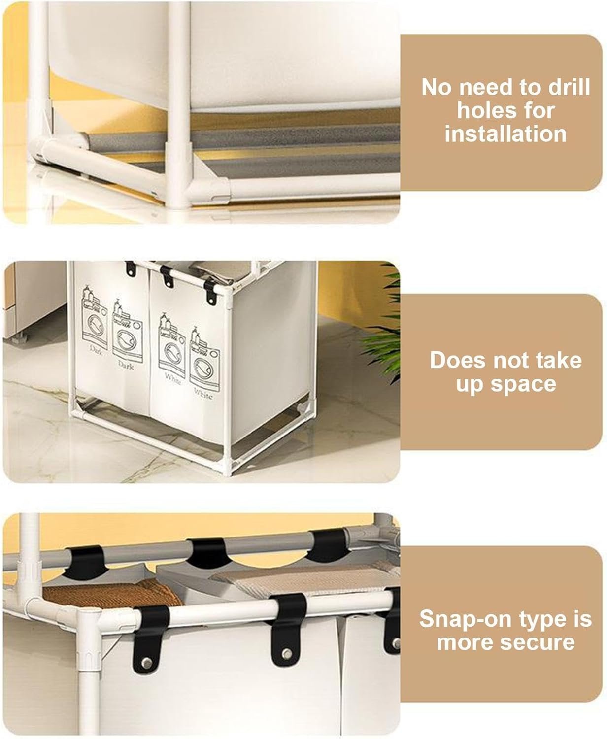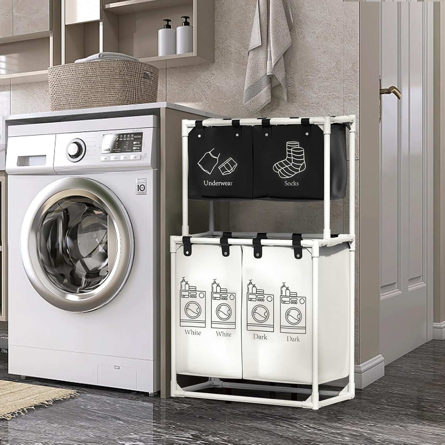 - 【A Versatile Everyday Helper】: Put the laundry basket in the laundry room, bathroom or bedroom. 4 pockets and 2 shelves help you store laundry out of sight while keeping essential essentials within easy reach