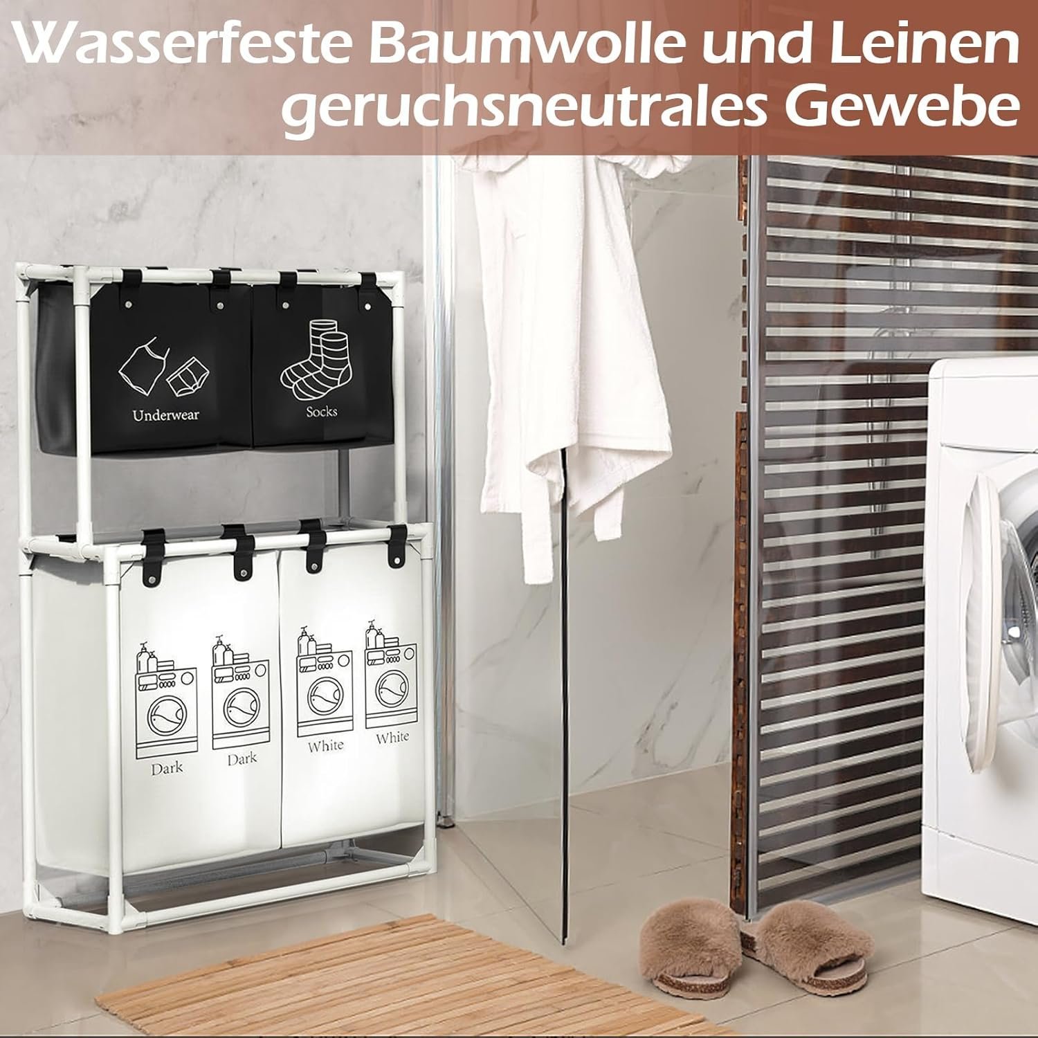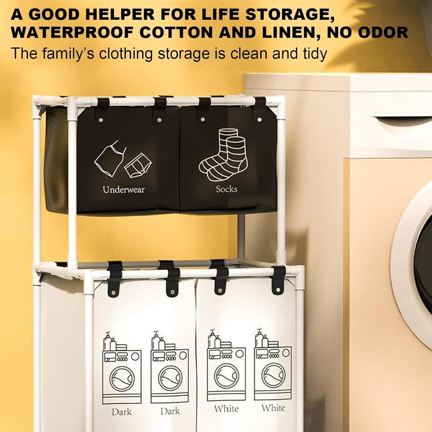 - 【Efficient Sorting】: With four compartments, you can sort your dirty laundry according to your needs, be it by color, material or other criteria. Each compartment is labelled for easy identification.