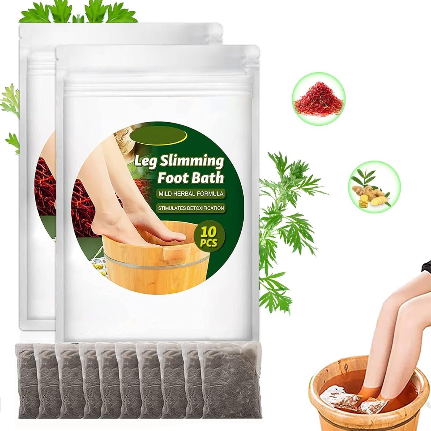 Lymphatic Drainage Ginger Foot Soak, Leg Slimming Foot Bath, Wormwood Foot Bath, Ginger Foot Bath Bag, Foot Reflexology Spa Relax Massage (10PCS)