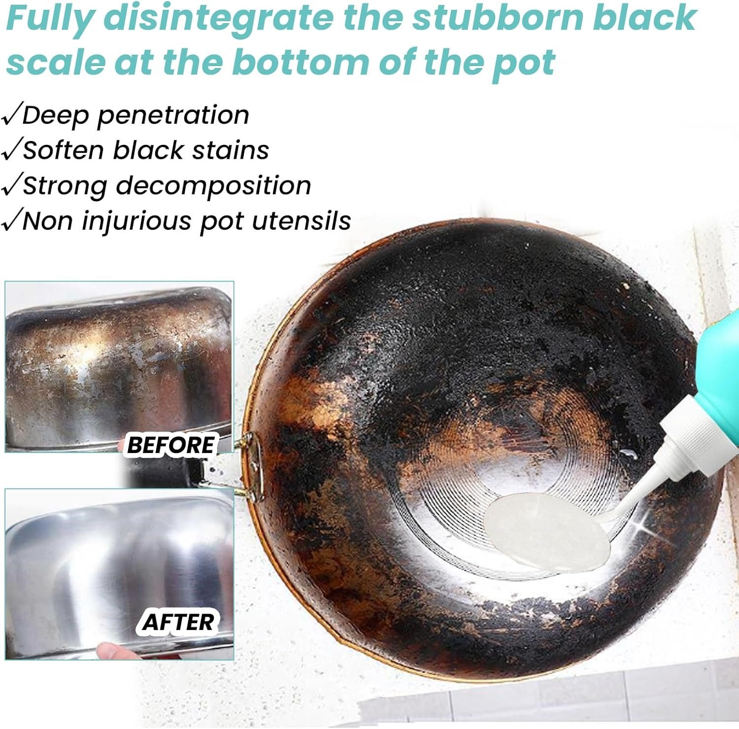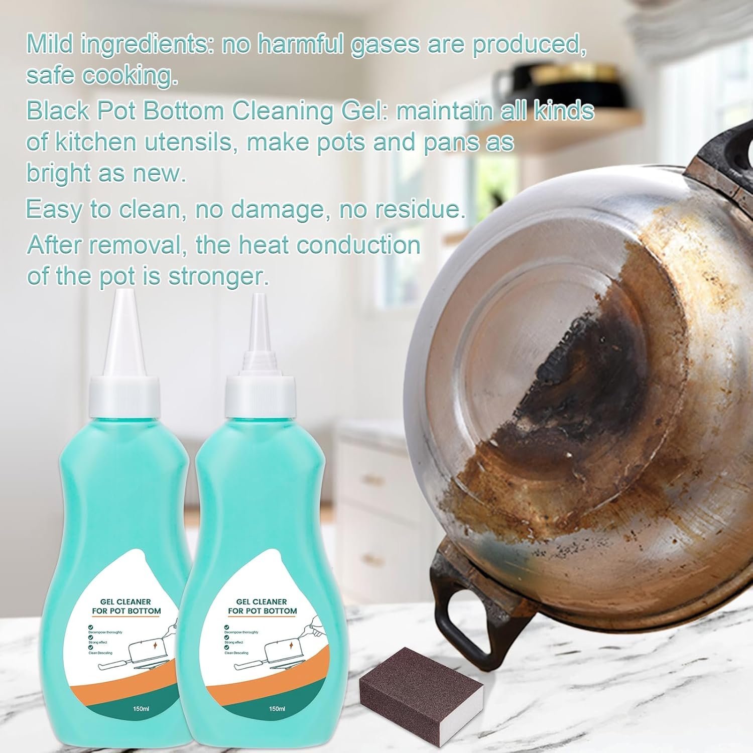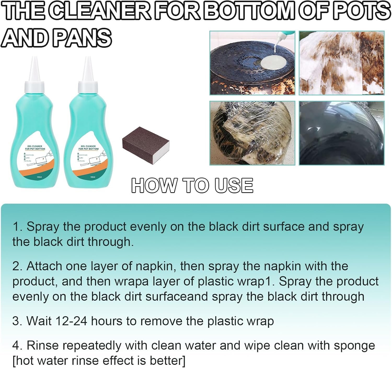 - 【Magic Gel Cleaner For Pots And Pans】:Cleaner for Bottom of Pots and Pans can fully disintegrate the stubborn black dirt on the bottom of pots and pans while maintaining all kinds of kitchenware, making your pots and pans shine.