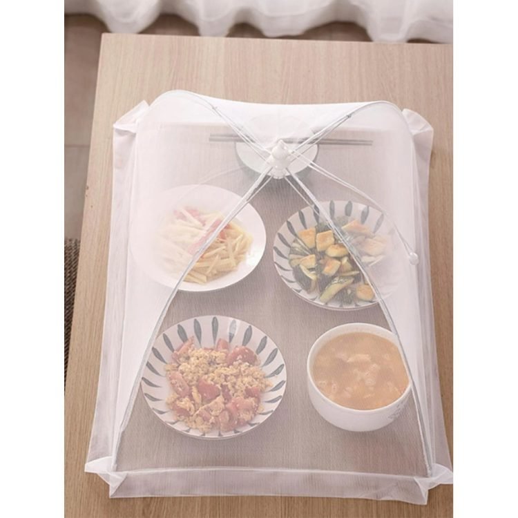 - Collapsible and reusable food net: Pretty clever umbrella design is extremely easy to pop up and fold for storage. When food covers for outdoors mesh screen attach stains, just rinse in cold water and let dry. Food net cover is more saving than disposable tin foil, plastic cover and paper plate