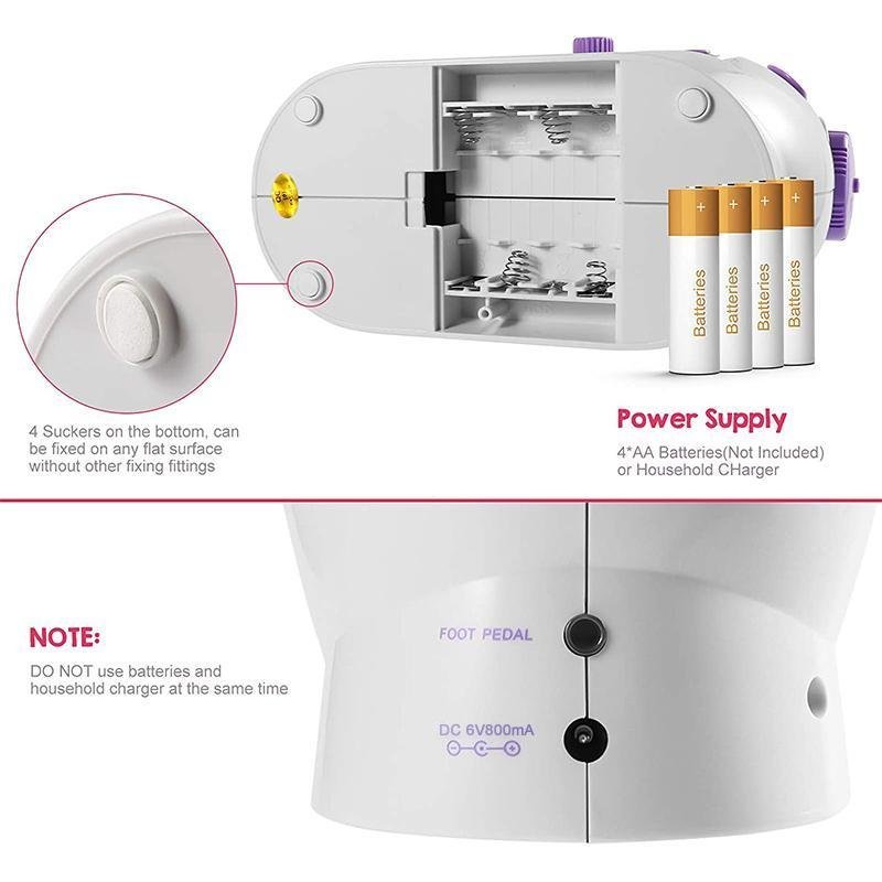- 👗 [MULTIFUNCTIONAL]: This mini sewing machine can choose two working speed modes according to your actual situation. It can be powered directly by the power cord and battery. When the power cord is connected, the foot pedal must be used. Two power supply methods cannot be selected at the same time.