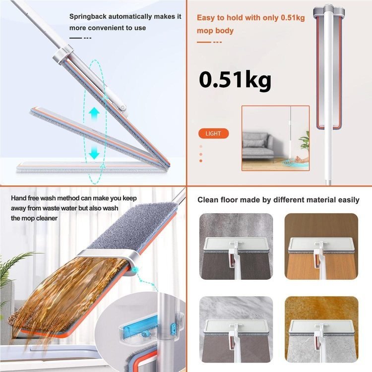 Mop,Self Wringing Flat Mop, 360 Turn Lazy Flip Flat Mop with 3 Reusable Fillings, Microfiber Mop for Floor Cleaning, Wet and Dry Mop, Floor Pinch Mop for Laundry Floor, Kitchen Cleaner